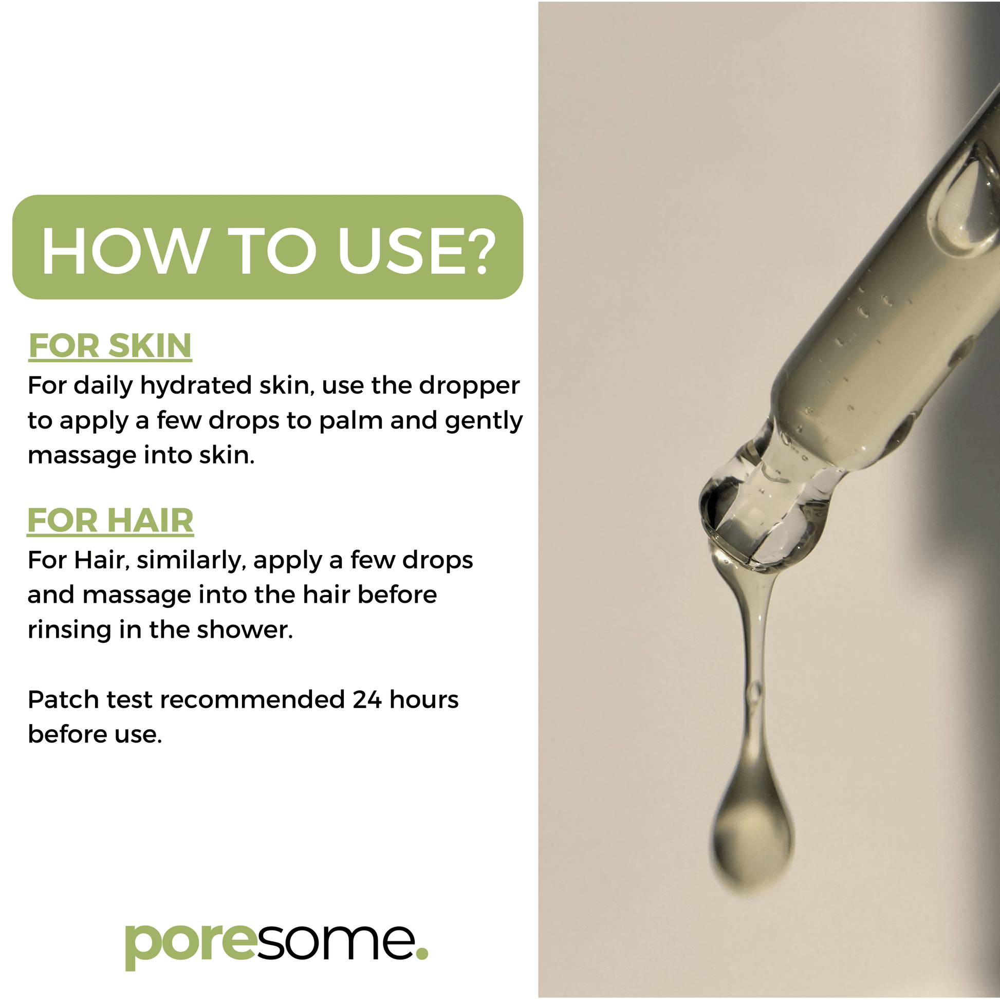 Apply a few drops to the desired area and massage. Can be used on face and body. Avoid contact with eyes. Patch test recommended 24 hours before use.